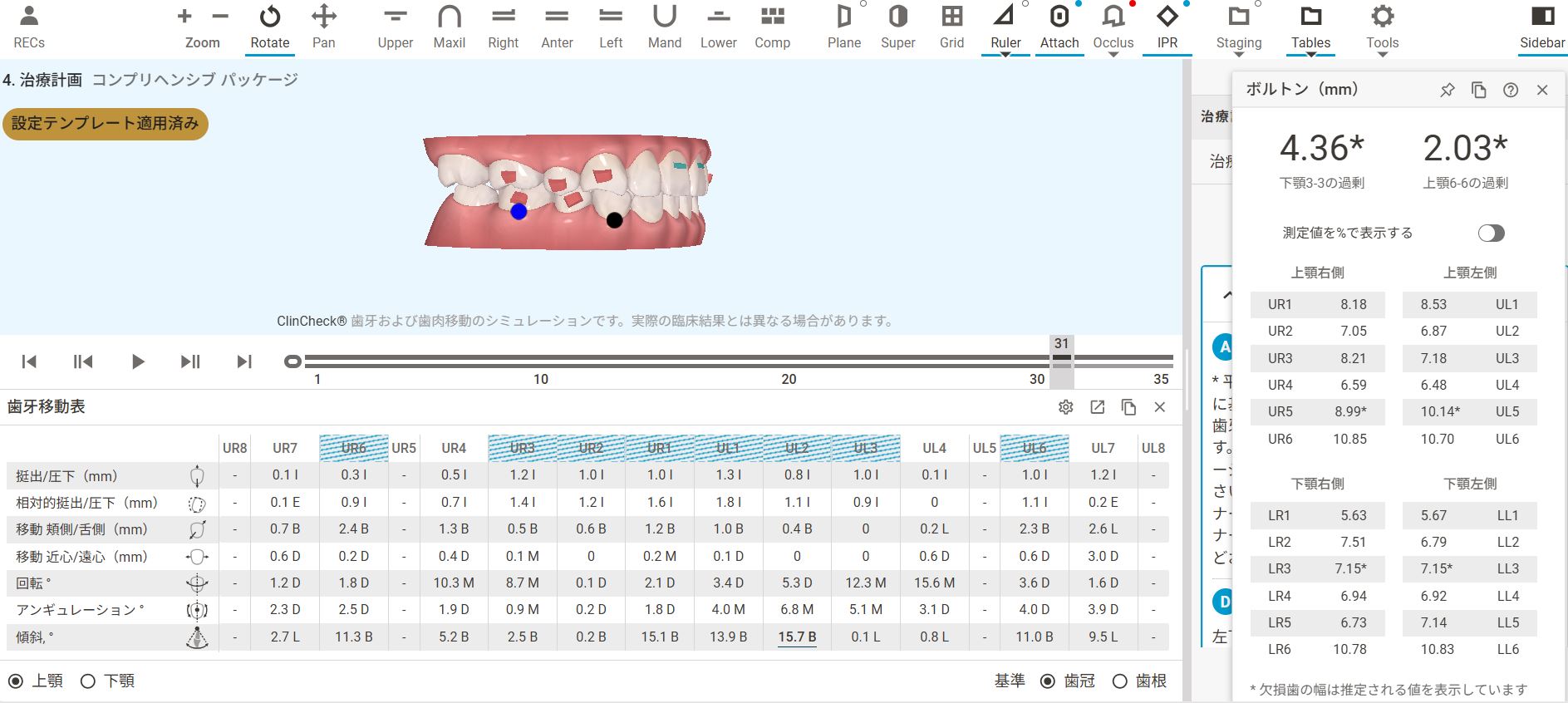 当院では、精密検査と詳細な分析に基づいて、抜歯の必要性を慎重に判断しています。歯科用CT、口腔内スキャナー(アイテロ)などの先進設備を活用し、3次元画像で歯周組織の状態を正確に把握し、顎の骨と組み合わせて問題ない動きの計画をたてていきます。。検査結果をモニターに映して視覚的に分かりやすく説明し、患者様が納得した上で治療を進めることを大切にしています。